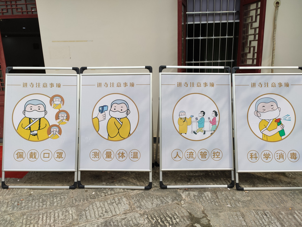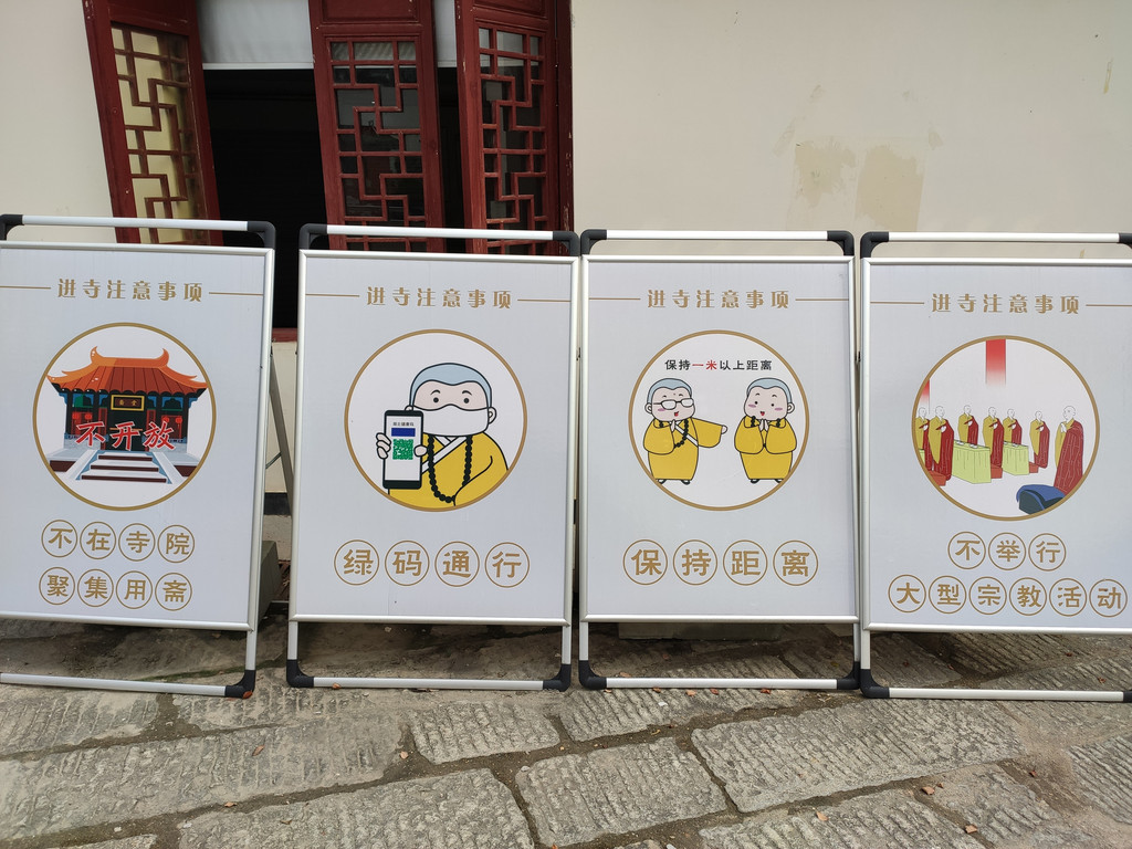 可爱的寺庙和尚提示牌,僧人也与时俱进啊