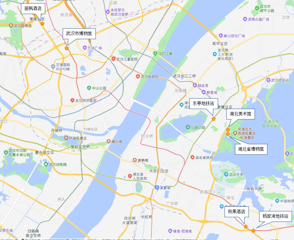 辛亥革命博物馆出步行(约10分钟)到达首义路地铁站坐到杨家湾地铁站出入住附近的秋果酒店。