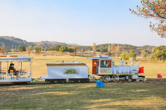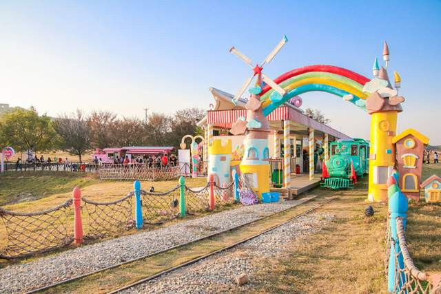 呜……呜……呜……伴着几声悠远的鸣笛声,小火车开动了。时而穿过糖果峡谷,时而穿越格桑花海,时而路过种满玉米的农田,时而又在紫藤花廊中穿梭……上一秒还是辽阔的草原风光,下一秒就到了充满童趣的巧克力山,那种感觉简直比爱丽丝梦游仙境还要奇妙。