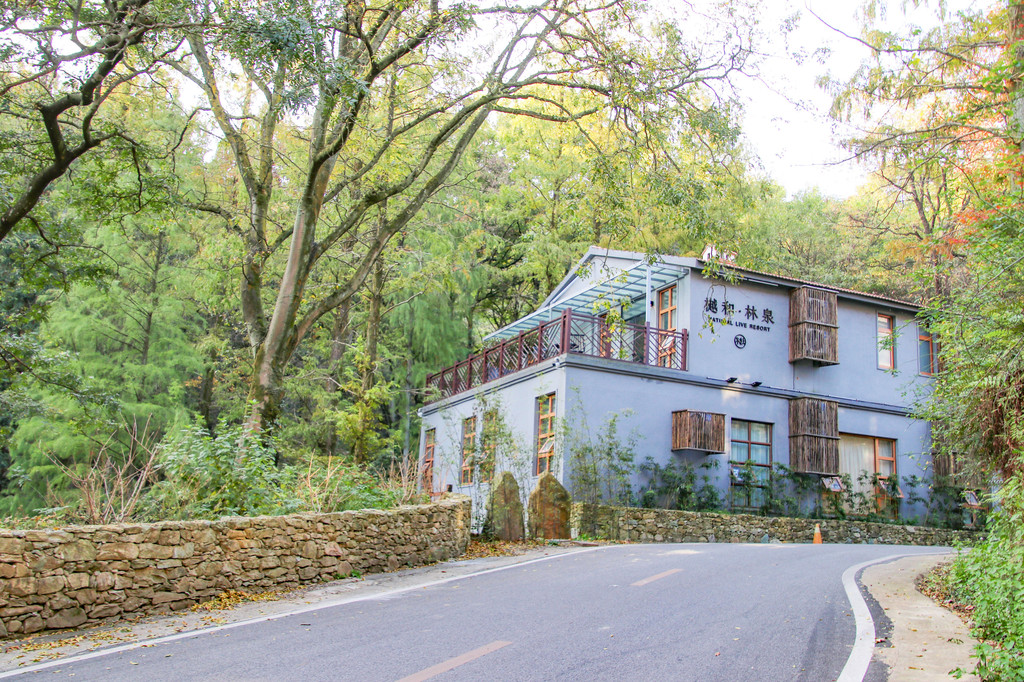 民宿坐落在武汉市黄陂区的木兰山里,被森林环抱着,有几分“养在深闺人未识”的意味。仅仅相隔一条马路的两家民宿,像是木兰山的一对姐妹花。它们的名字都非常有韵味,一个叫做青曦·望云,一个唤为樾和·林泉。