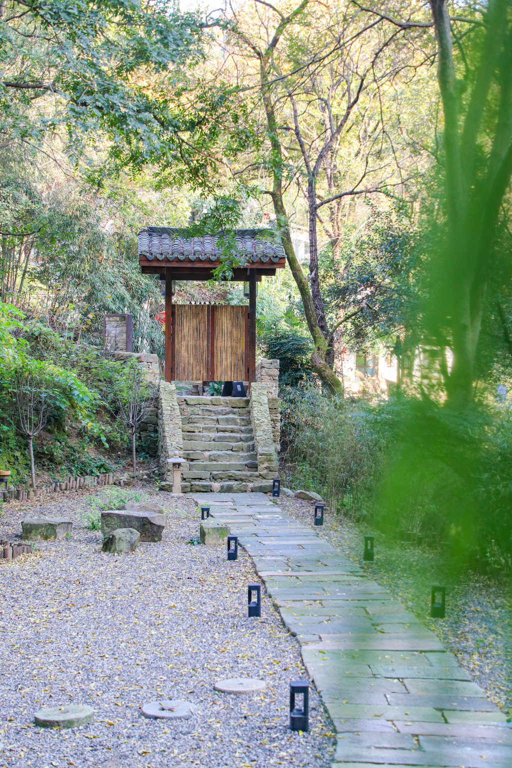比较触动我的是樾和·林泉对自然的尊重。为了更好地与山水融合,民宿与外界并没有严格的隔断,而是采用矮竹、石头等划分开,我们甚至还可以看到有棵树从房屋里长了出来,这一切都是基于对自然的尊重。而事实上,民宿的名字“樾和”本身也蕴含着与自然和谐共处的意思。