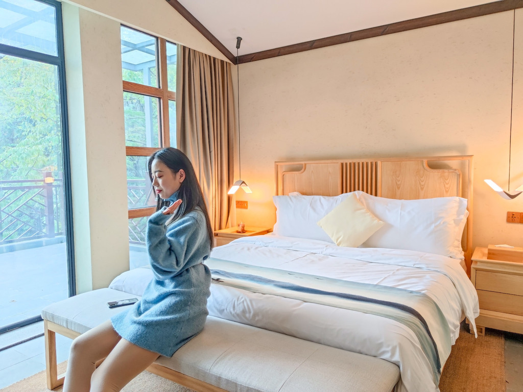 樾和·林泉同样只有八间房,房间里的超大落地窗直面山林美景,可以说是非常养眼又养心的。
