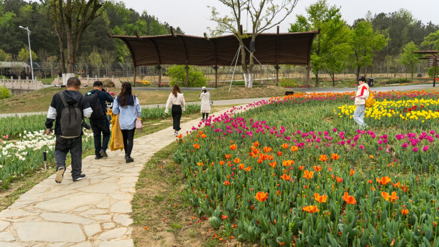 此时,大片郁金香、三角梅,油菜花,杜鹃花正在盛开,装点了山村美景。花乡除了观花,还有许多好玩的,卡丁车、碰碰车、游船、滑索都可以玩到。