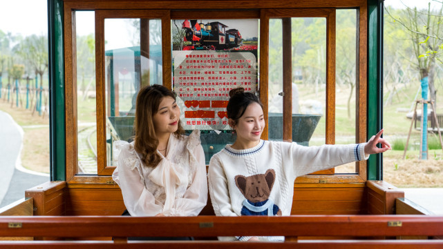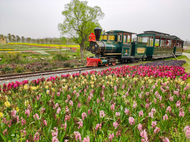 由于园区很大,观花乘坐园区小火车可免行走之苦,还能一览众花。