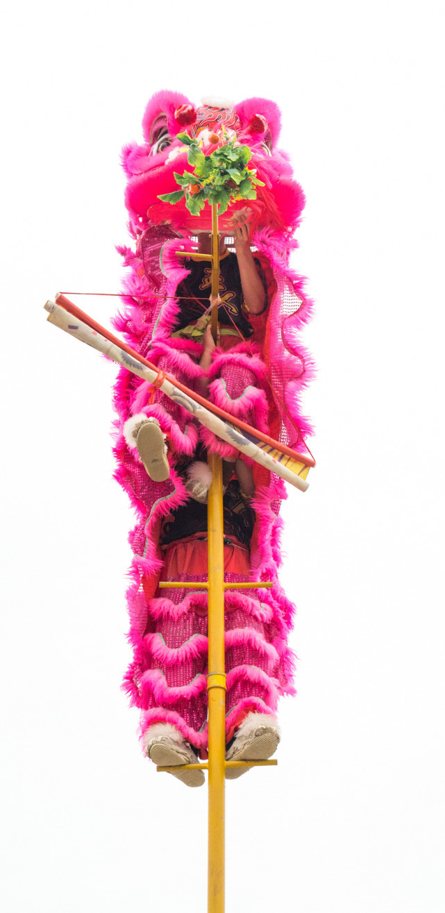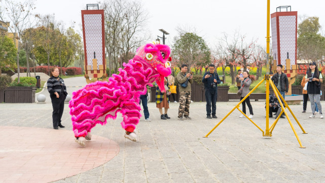 我们正好赶上小广场上的梅花桩舞狮,2人的高空表演难度非常大,游客不多,但演员们表演很是认真卖力。