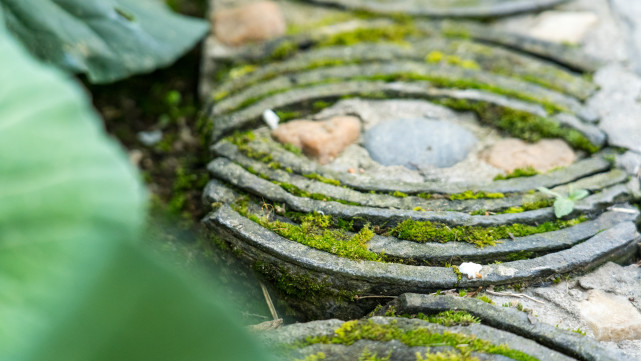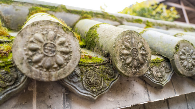 斑驳长满绿植的墙瓦,墙缝中透着文艺。
