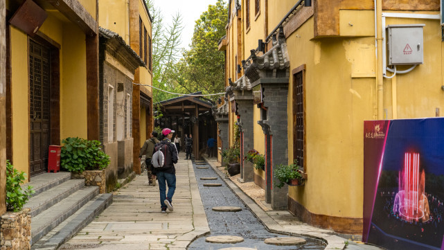 在酒店吃过早餐,走出庭院式酒店,围绕周边转一圈,发现满眼入目的,除了具有诗情画意的民宿小院,就是多“花木兰”元素。