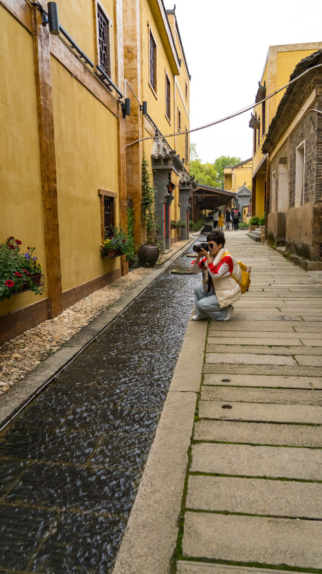 景区内有吃住娱一条龙服务。一条不算长的商业街,青石板路黄灰色墙体,鲜花开满门前,街道两侧沿着门店是清清流淌的河水,极具田园古朴风。
