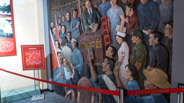 陈列馆用声、光、电、图片、模型、蜡像等多种技术手段,再现了当年波澜壮阔的抗战场景。