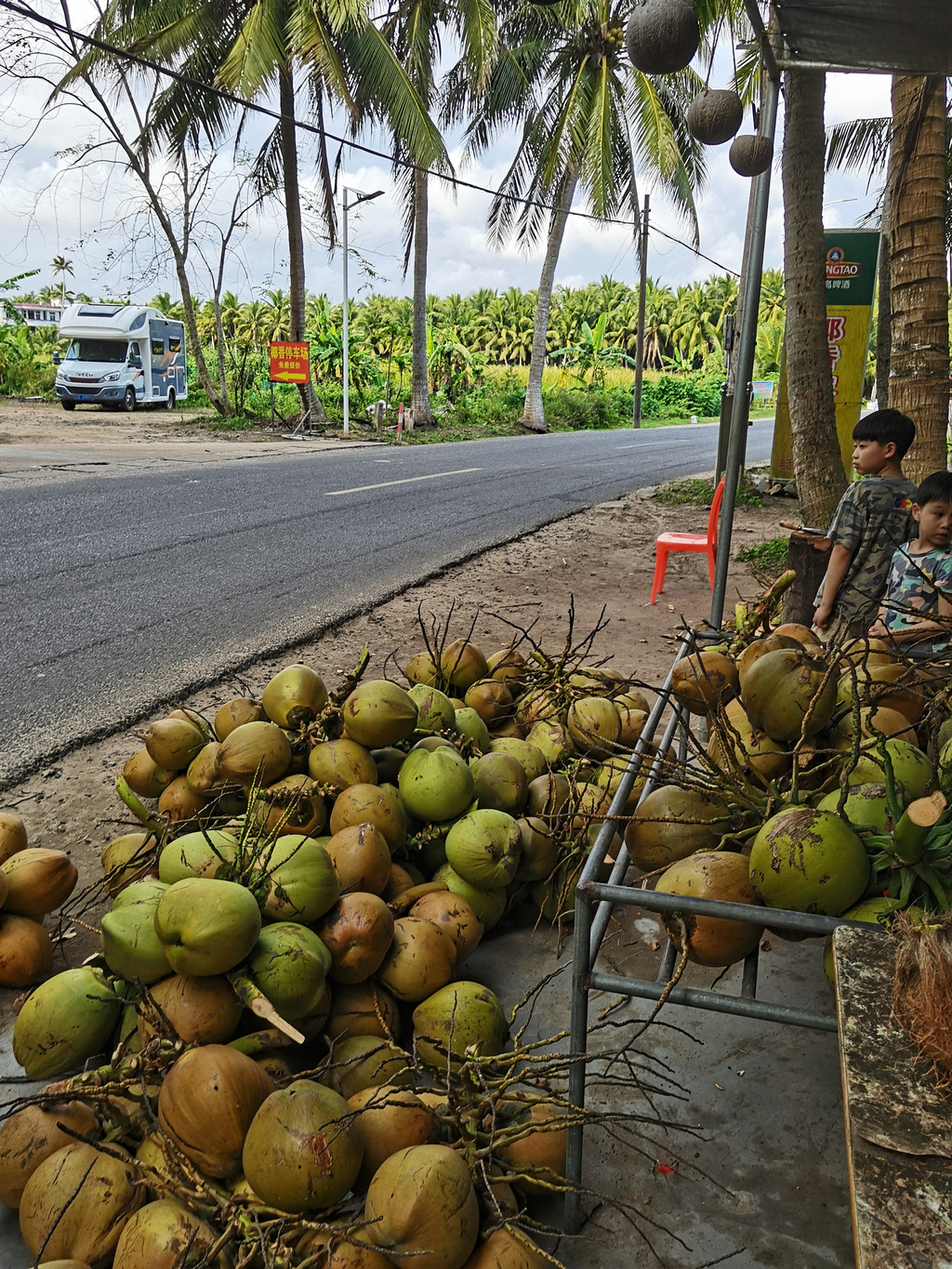 这边路上有很多卖椰子的,我们全家一致认为,绿色的比黄色的要好吃。