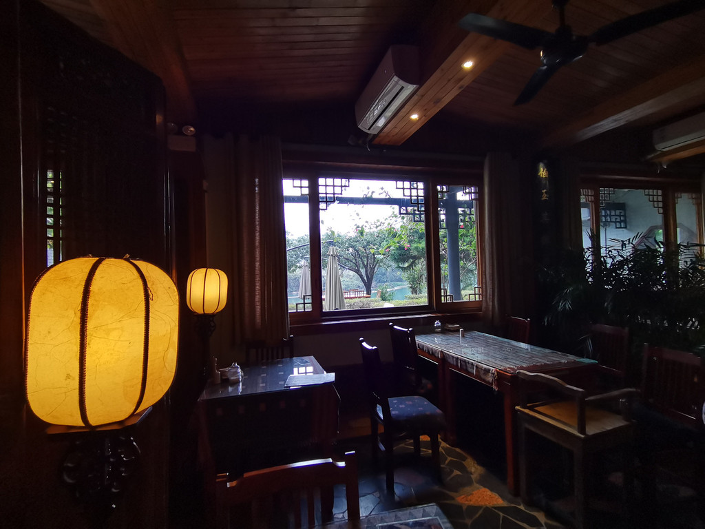 自助早餐的餐厅有着林间山景,很富有禅意。