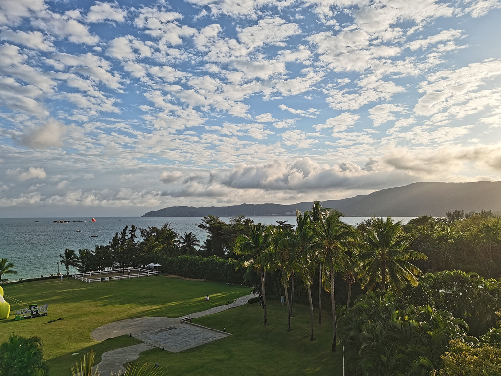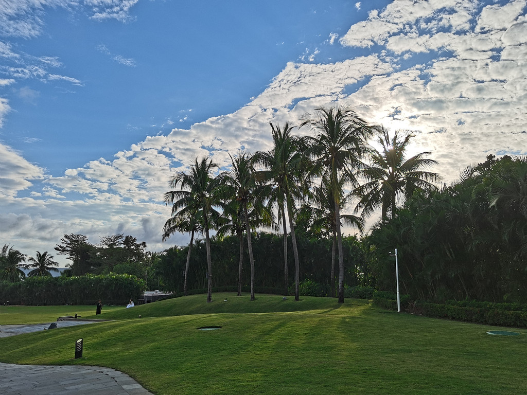 虽然这里不能跟马尔代夫的海水、沙滩相比,但碧海蓝天、椰风绿茵,让我们这些每日“囚禁”在都市里的北方人瞬间破防。