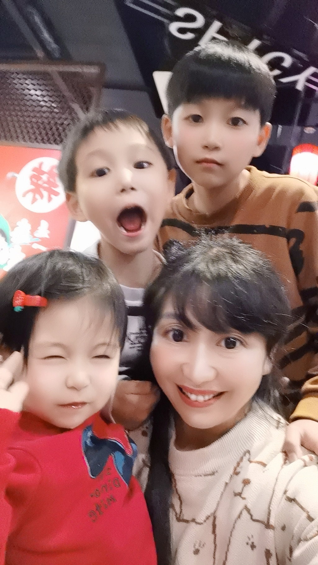 唯一的小遗憾,本来我和我老公穿得也是跟孩子们一个系列的亲子装,可惜啊,这一大帮子忙着吃、忙着乐,谁也不肯配合我拍张全家福。