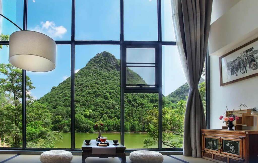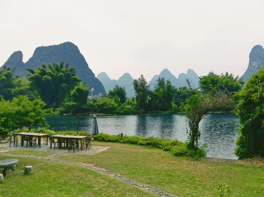 这些可都是酒店里的景致哦——遇龙河水近在咫尺,竹筏轻舟摇曳而过,青山碧波自成诗画,闲情雅致悠然自得。