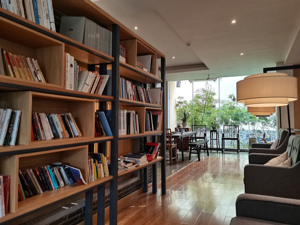 酒店一楼有一个小小的阅读区,除了文化历史之外,还有很多书都是关于书画方面的。听前台的工作人员说,酒店的老板并不是圈内人,但就是特别热爱这些,所以酒店也是挂了很多画作(现代画家)。