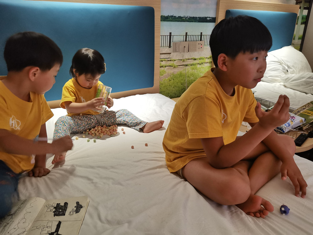 二儿子:在思考人生么?反正,他后来一路上都在说喜欢这个酒店,没住够