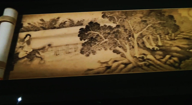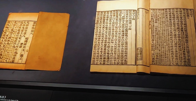 另一组展柜陈列着“九歌图”古画,“楚辞集注”“史记”“文选”等书籍的线装本。