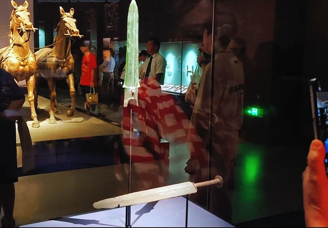 进入第一展厅,一座由六匹健硕威猛的奔马组成的“天子驾六”塑像给人巨大的视觉冲击。这是根据荆州熊家冢遗址复原的,推测是楚惠王时期的产物,它让人不禁联想到楚国最强盛时的风貌。