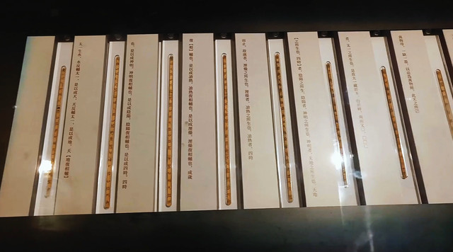 进入第二展厅,首先映入眼帘的是展台里面的一系列竹简。这些不过小指宽的竹简,字迹灵秀而有力,是楚国的政教治制度、法律法规以及文化传承。