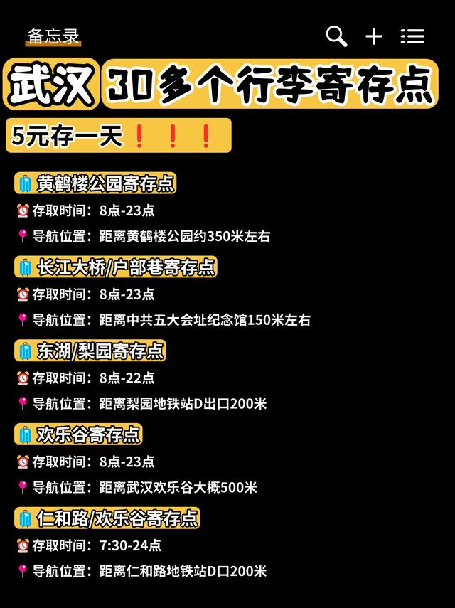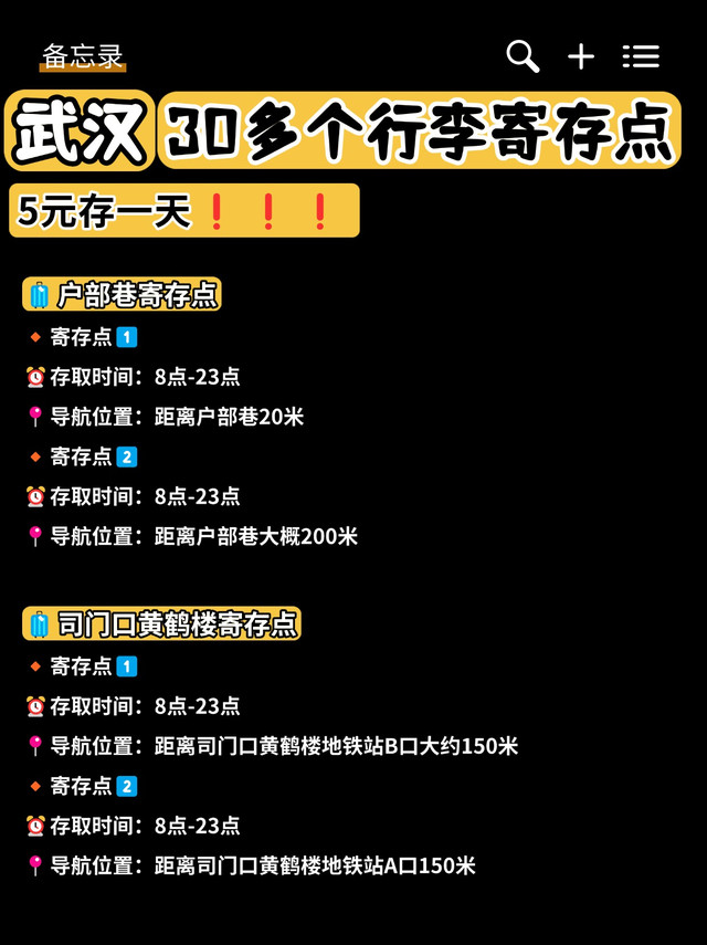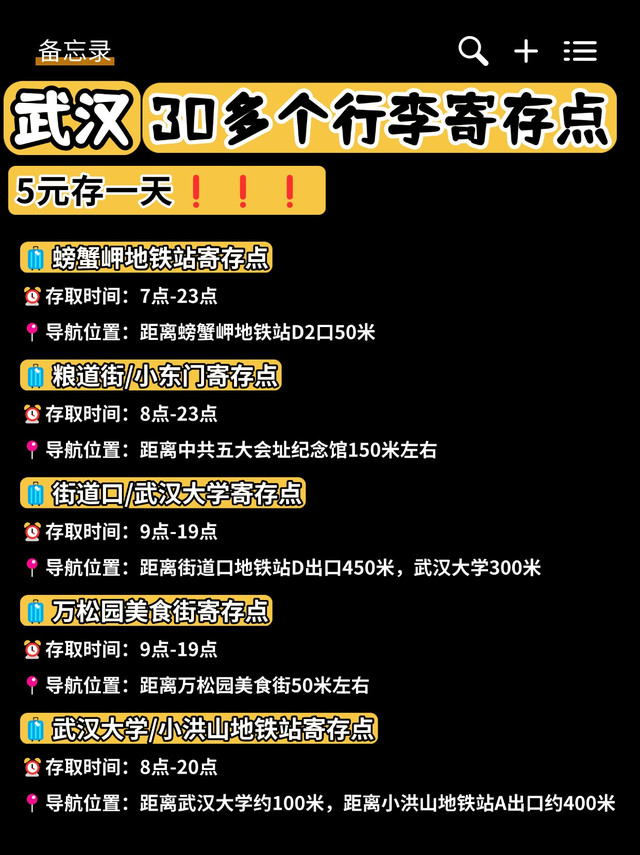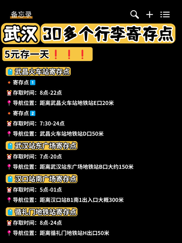 熬夜整理出来武汉30多个行李寄存点位置~