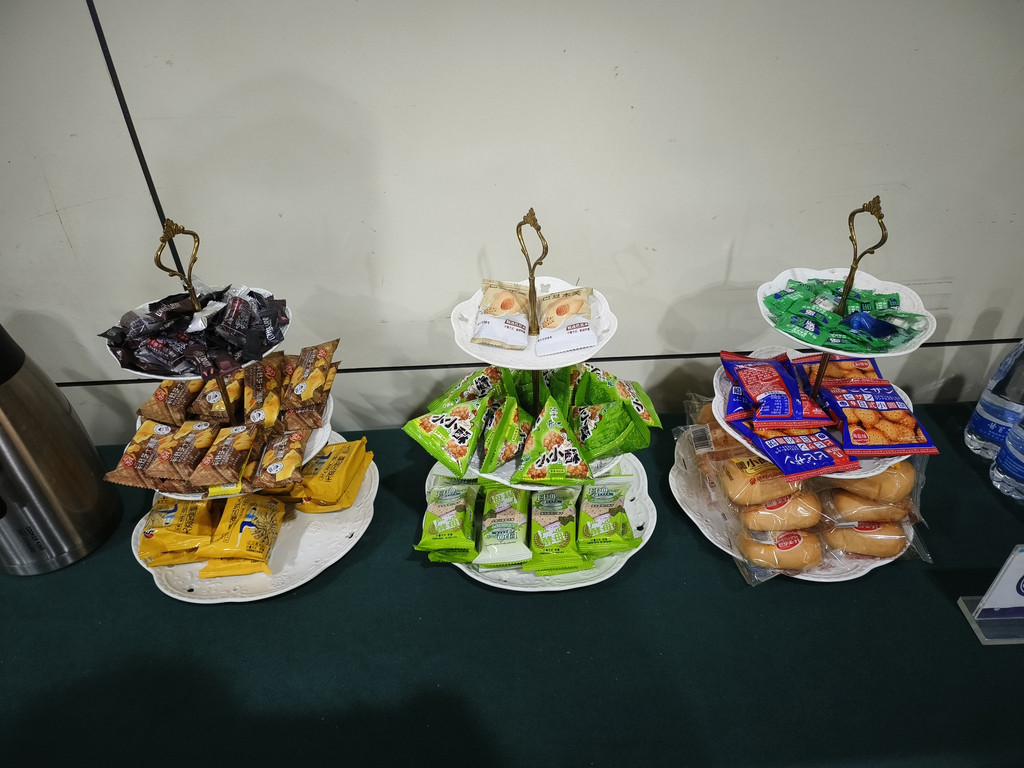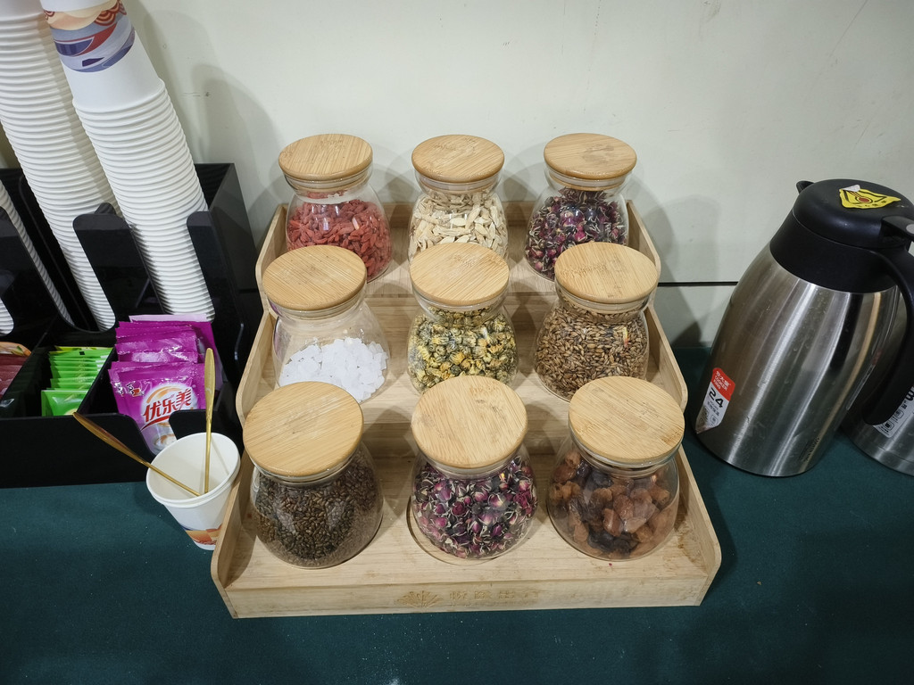 不巧的是这次济南站商务座候车室正在装修,暂时在一楼挺简陋的设施。有各种花茶和袋装速溶咖啡,一些小点心零食。