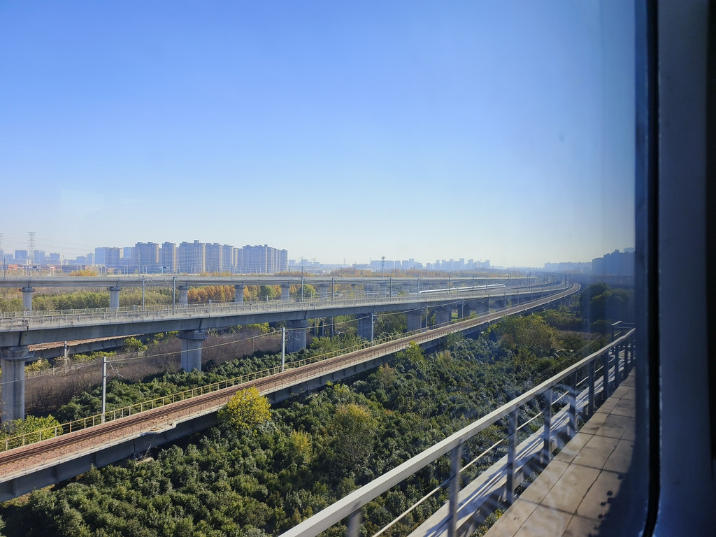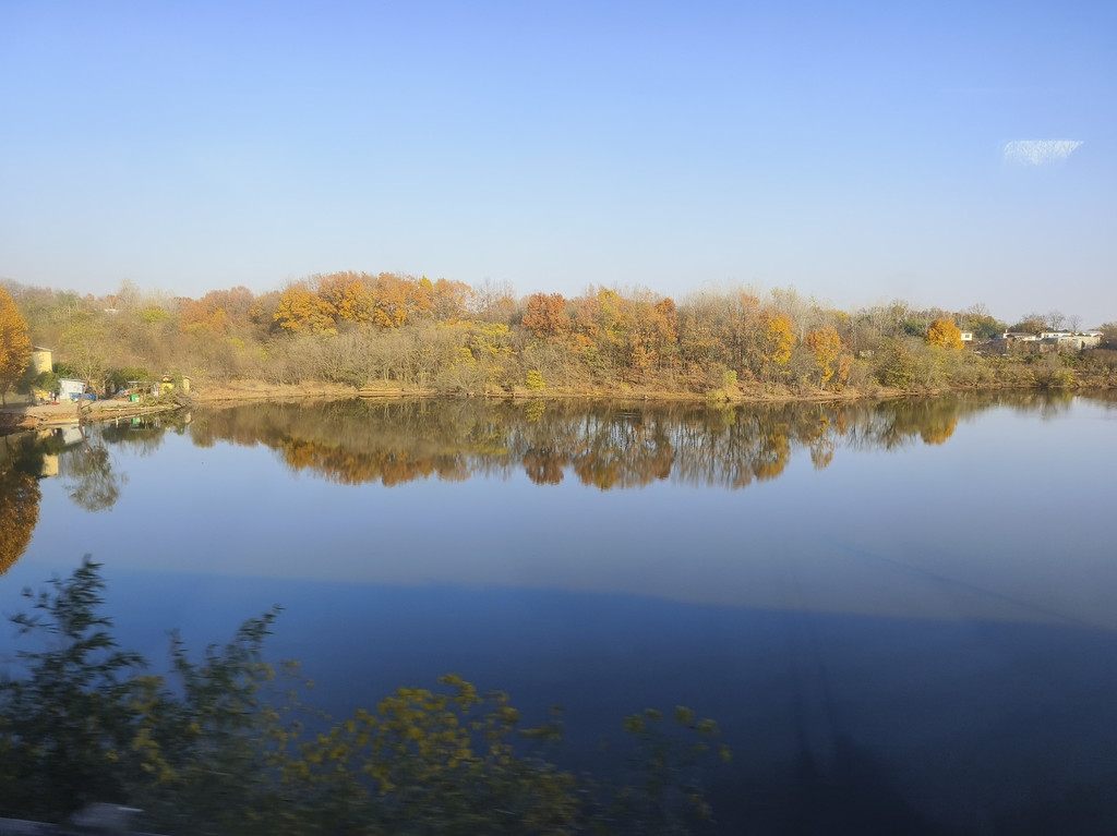 坐高铁的乐趣之一是可以一边吃零食一边看风景,北方晚秋里沿途的景色,是彩色的调色板