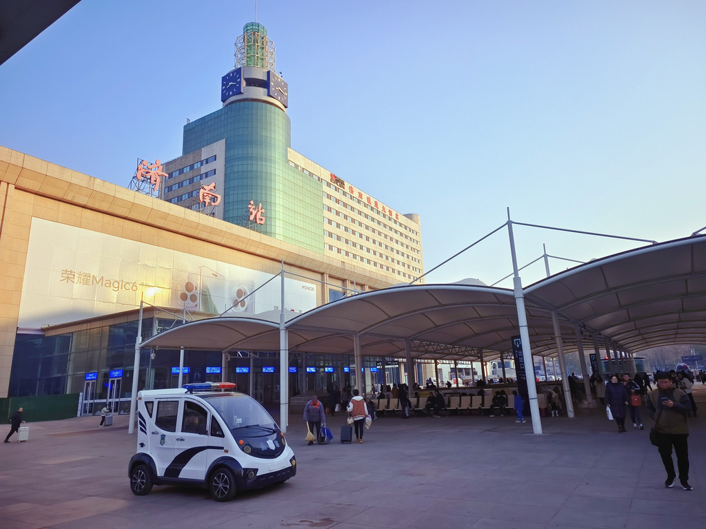 早上8点网约车,大约十分钟便到达了济南站广场。去过很多城市,觉得济南的网约车师傅的服务和车辆的干净度都很棒的。周日的清晨,济南站并没有多少的旅客,进站口三三两两稀稀疏疏,根本不用排队。站广场非常干净整洁,并且有警亭和巡逻车,安全感十足呢。