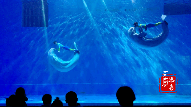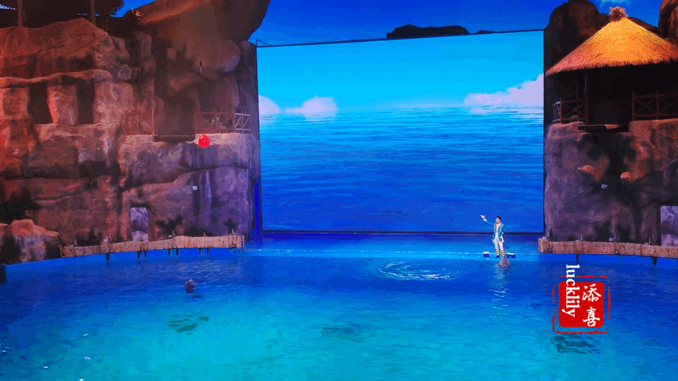 每天下午3:30海洋秀场有一场大型演出"海豚湾恋歌",人鱼姑娘、海盗先生与海洋动物之间交互呈现的一场绝技演出,精彩到令人激动不已!海洋公园采用了第五代海洋公园的全新理念打造,带给游客的交互式体验有所超越,以故事线为主轴,以互动参与为主导,以高科技多媒体为手段,将淡水王国、海底世界、南北极大陆冰海的原生态环境与海洋极地生灵的生活状态进行全方位的展现,让人们沉浸在从未见过的海洋世界,体会人与自然、人与海洋极地生灵和谐共生的美妙感受,真是棒极了。第一次看到人鲸共舞,太有爱了,全场都是掌声与喝彩,满满都是感动!