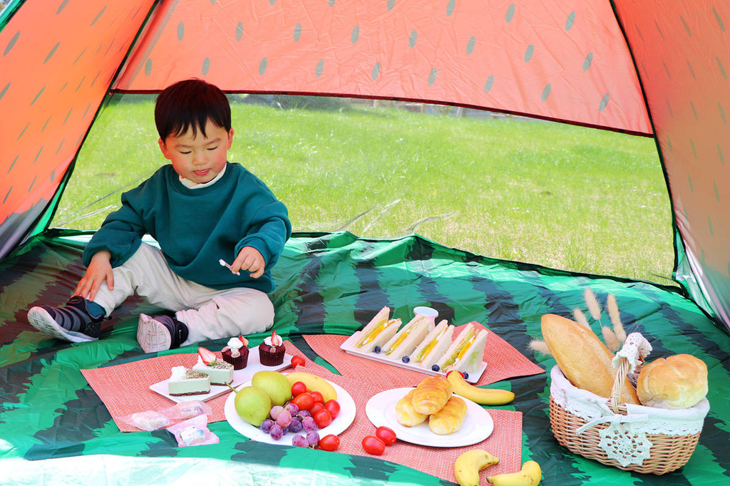 次日,恰逢一个阳光甚好的早晨,去一层的味客餐厅享用早晨,宝贝却找到了属于它的快乐空间,在餐厅户外的草坪上,搭起了很多可爱的小帐篷,专门迎侯假期出行的宝宝们。