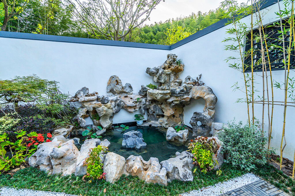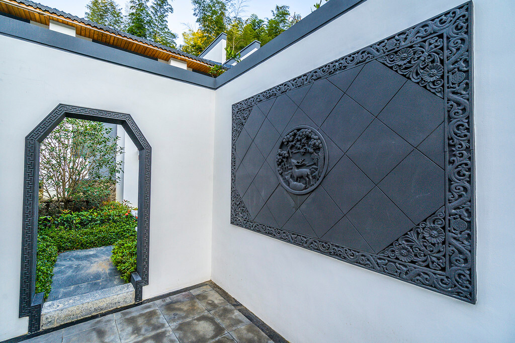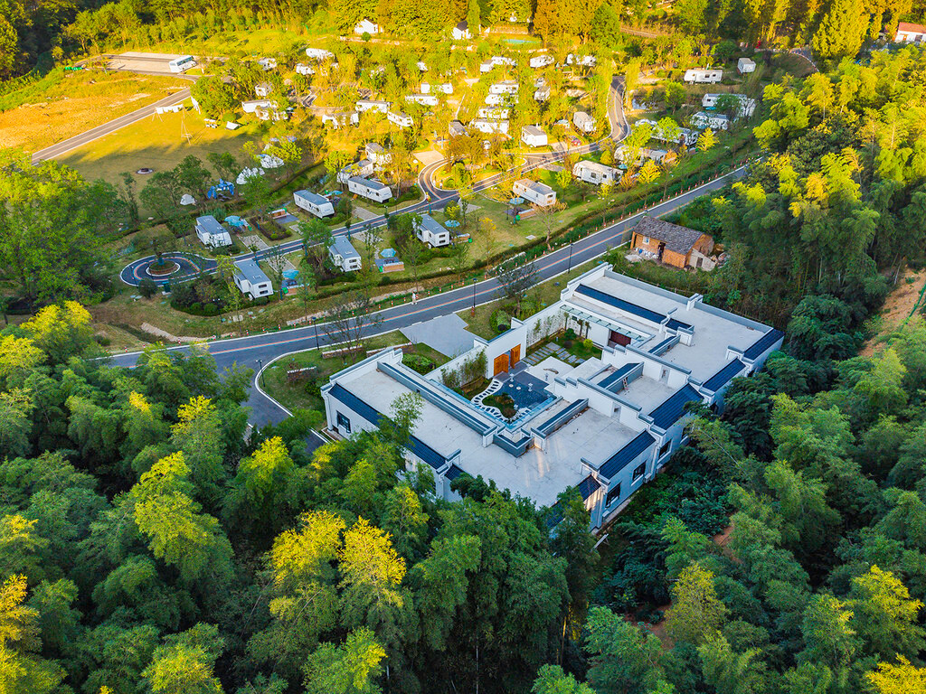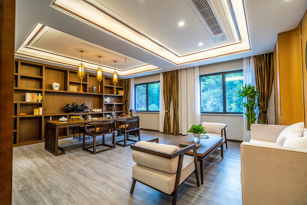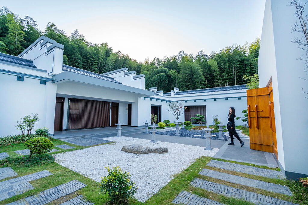 在营地的最高处还有一处独栋别墅,新中式建筑外观低调奢华,私家园林式的空间布局尽显尊贵大气,走进别墅内部更是暗藏乾坤。