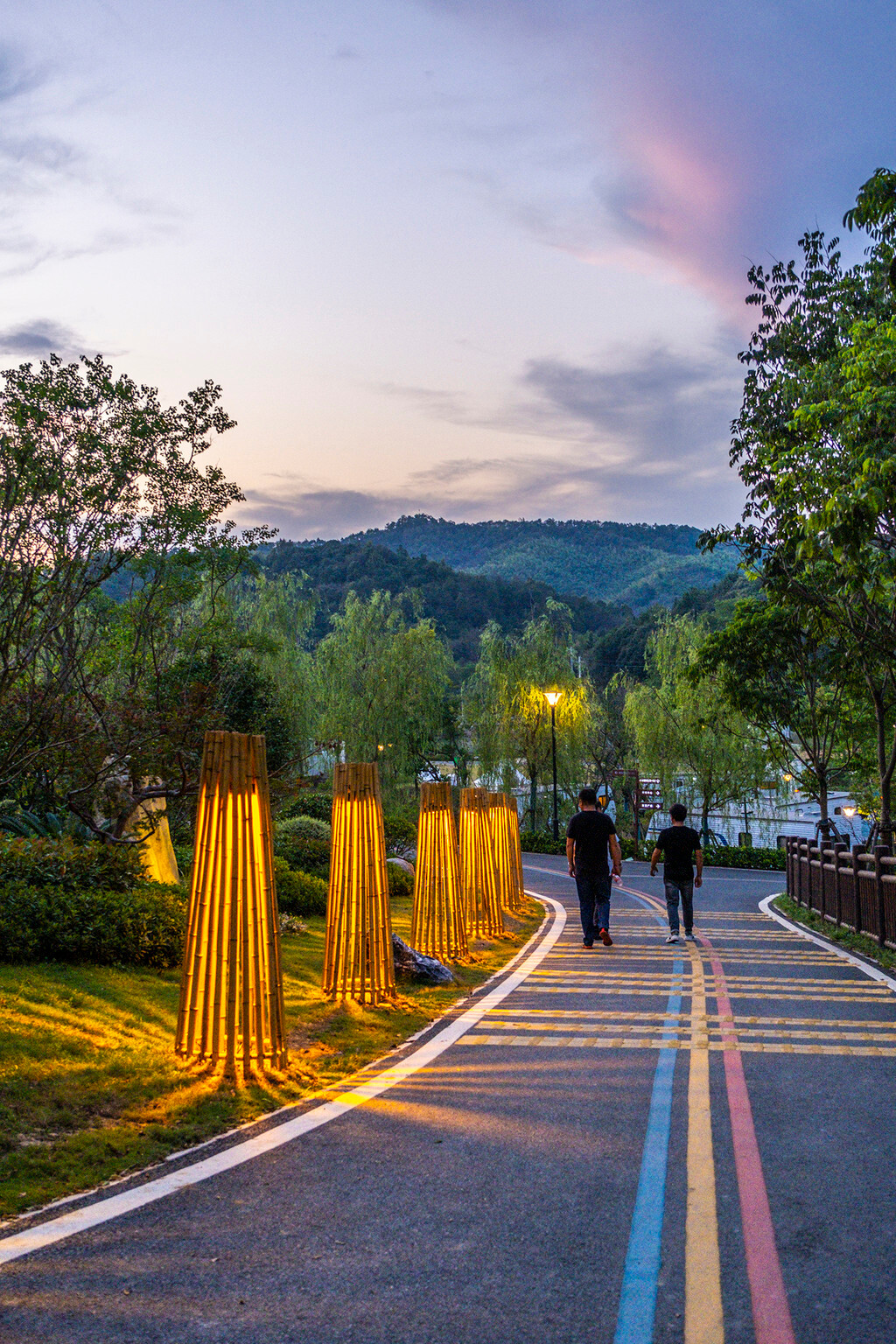 沿着白天走过的路走向今晚最期待的烧烤区,路边别致的小灯让我眼前一亮,白天的民宿此刻也被灯光妆点,显得格外宁静美好。远山在晚霞的衬托中像画一般,吹着初秋的晚风,听着声声蝉鸣,想着接下来的大餐,心情更是无比的舒畅。