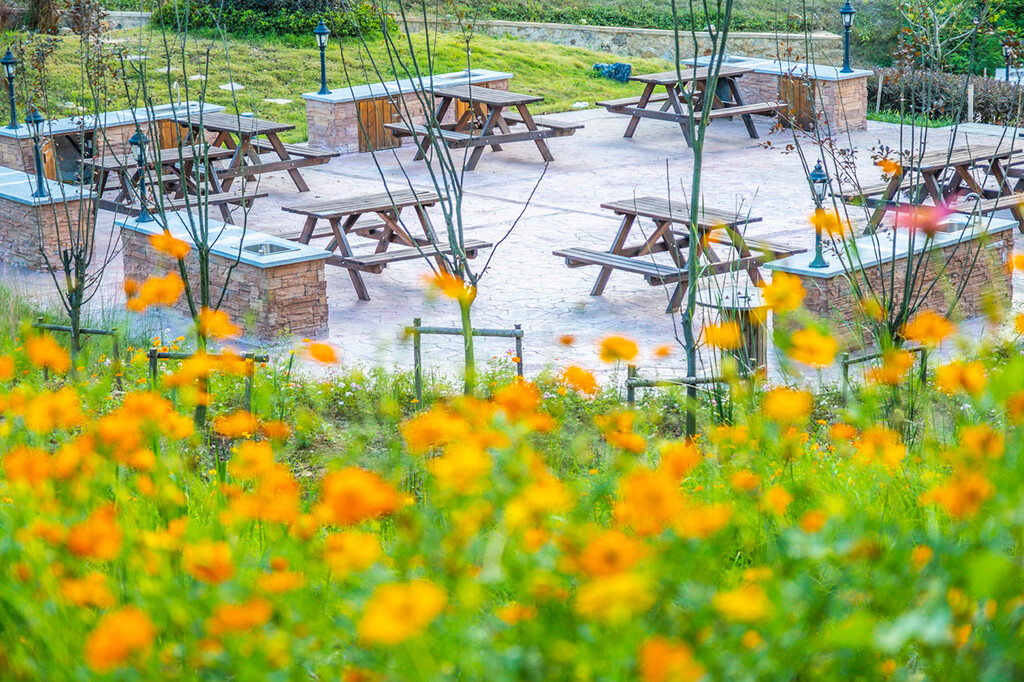 整个营地三面环山,森林花海湖泊围绕。在这里,每一处房车旁都栽种了浓密的绿植,完全不用担心隐私问题,如果是自己开车过来的,房车旁边也有专属车位方便停车。院子里的烧烤台、户外休闲座椅也能够不费力就能享受房车外院子里烧烤的乐趣。