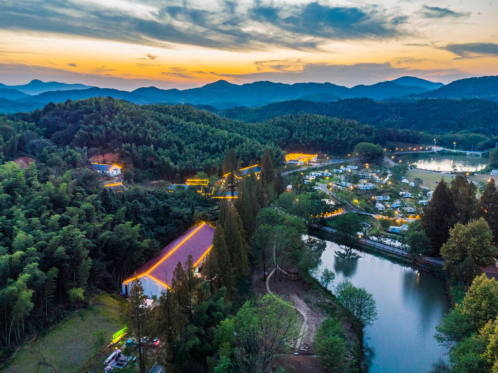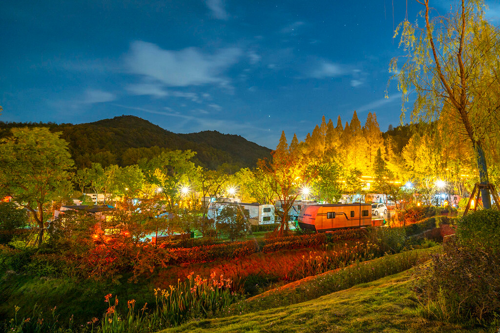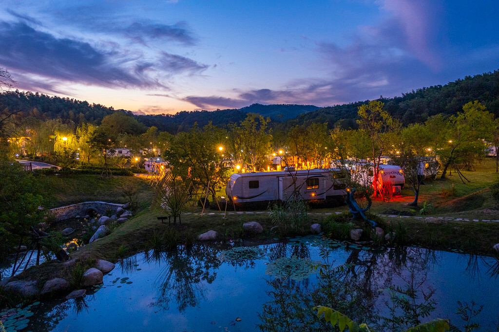 太阳落山天色渐晚,当暮色渐浓远山变成深蓝色,当房车周围橙色的灯光依次亮起,当空气中出现了炭火的味道,这时途居露营地的魅力才真正显示出来。
