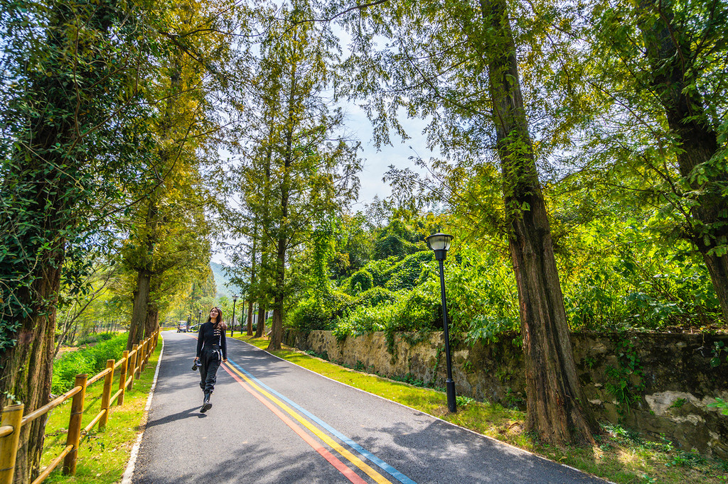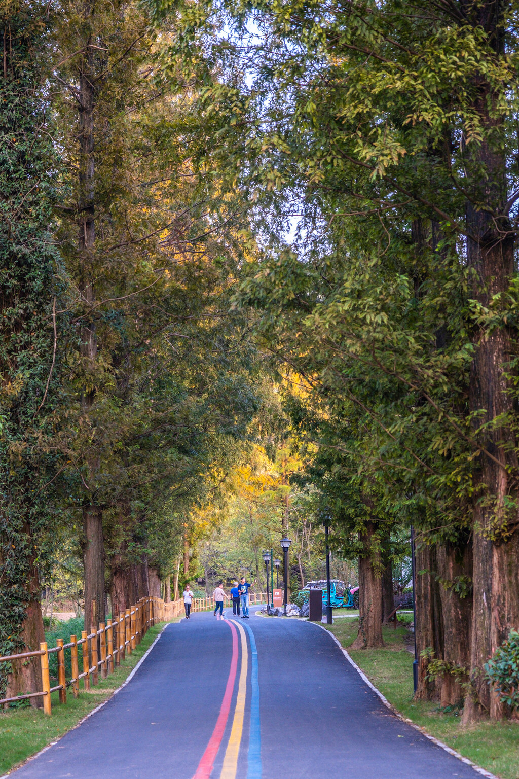 走出房车继续探索营地,才发现这里好玩好看的景点还有很多。高大的水杉林现在只有一点点红,估计等到深秋的时候这里的景色应该绝美。
