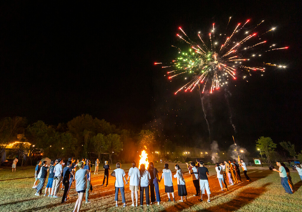 入了夜好戏继续上演,白天的大草坪晚上就变成了小伙伴们载歌载舞的舞台。主持人也是格外的敬业,妙语连珠各种段子逗得我是笑个不停,还有好多好玩刺激的小游戏,大朋友小朋友们都嗨的停不下来,让我特别惊喜的是篝火晚会上还会有无与伦比的烟花表演,房车、烧烤、露营、篝火、烟花,我心中的完美的露营就是这样!