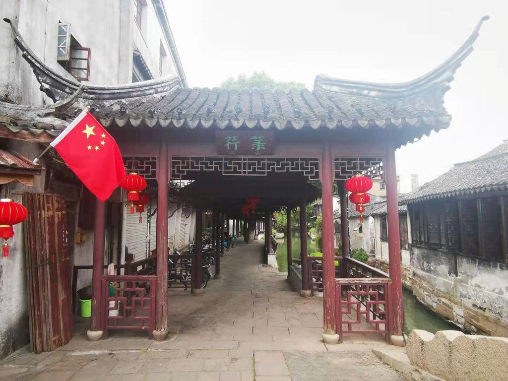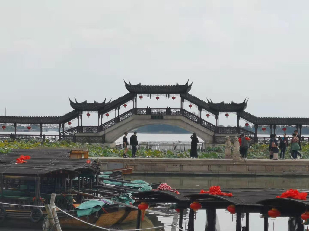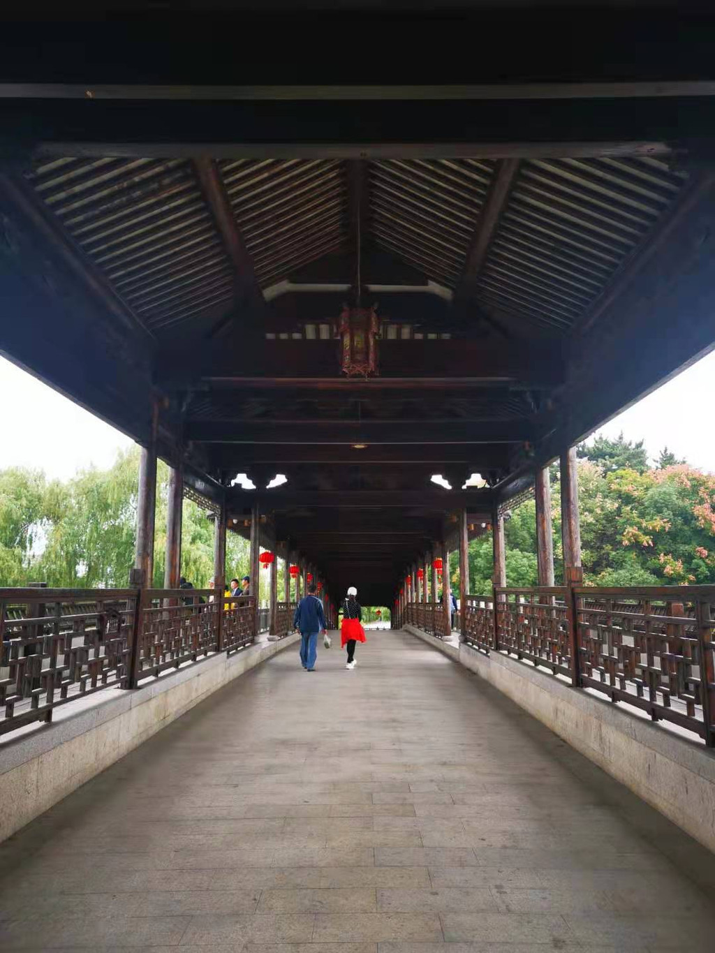 第二天,早上到锦溪古镇游玩了几个小时,锦溪古镇的特色就是廊桥了。穿过这座廊桥,沿湖兜一圈