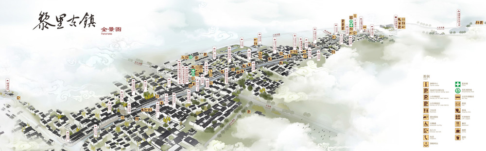 梯云桥头,有黎里古镇的简介和游览导游图。