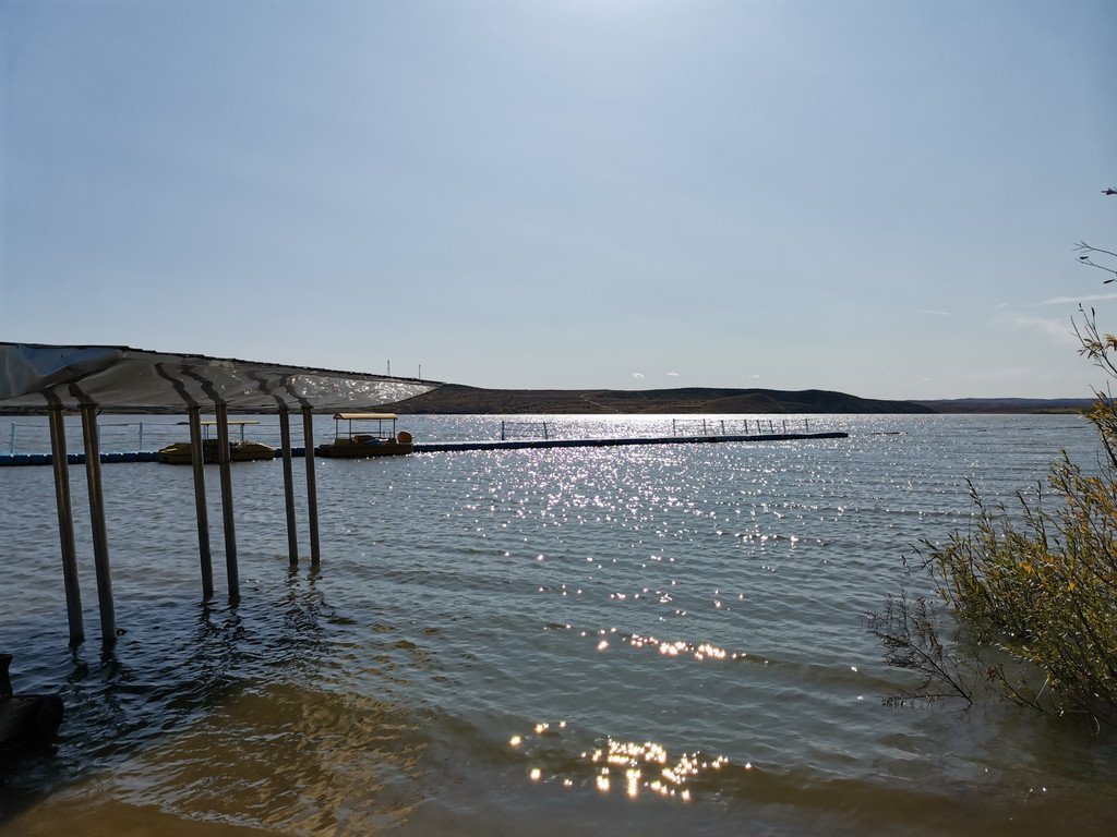 下午2点从酒店出发经过半个小时的县道到了察尔湖。察尔湖现在是国家湿地公园,由友谊水库和后和构成水系,由于周围有山形成了一个山水相映的景观,秋天的察尔湖人少,秋风吹过湖面,波光粼粼。站在湖边抬头可见蓝天白云,空气清新,心旷神怡。湖边有度假酒店,有停车场,夏天应该是个避暑的好去处。