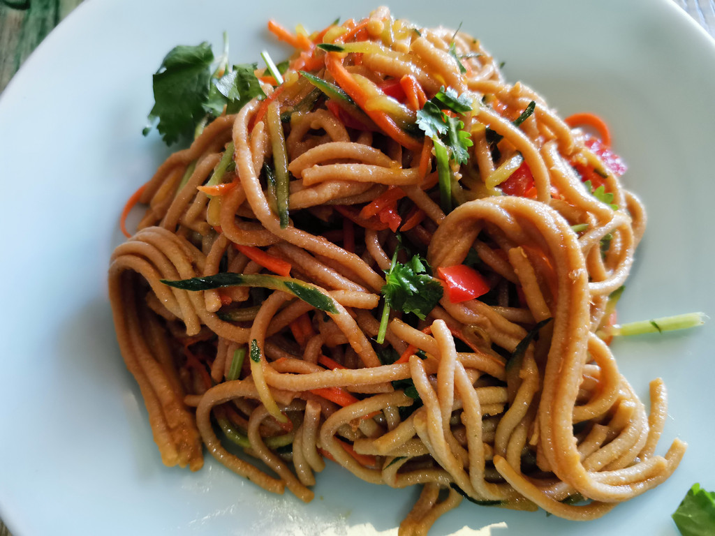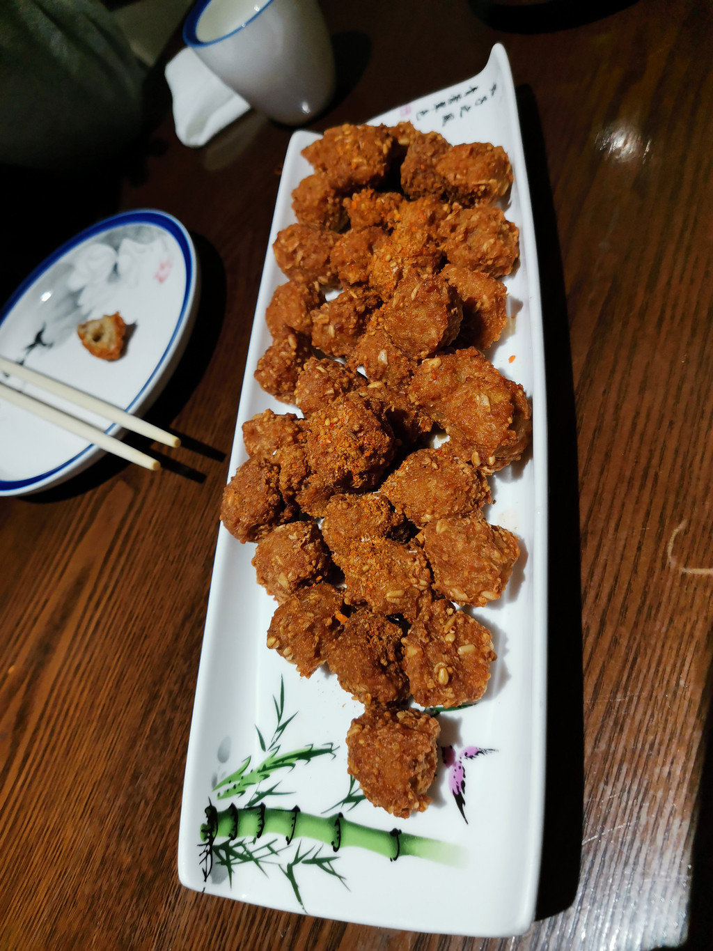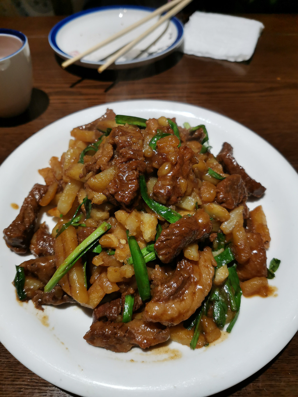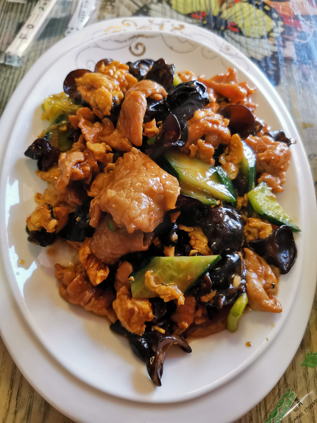 中午我们不到一点就回到市区,找到一家评价比较高的饭馆-妈妈的厨房,排了半个小时的队上到饭馆二楼坐下,点了他家的四人套餐,品种多价格又实惠,包括凉拌莜面条,烤鱼,特色炝炒菜花,苜蓿肉和凉菜炒饭,吃的饱饱的,感觉5到6个人都够吃。