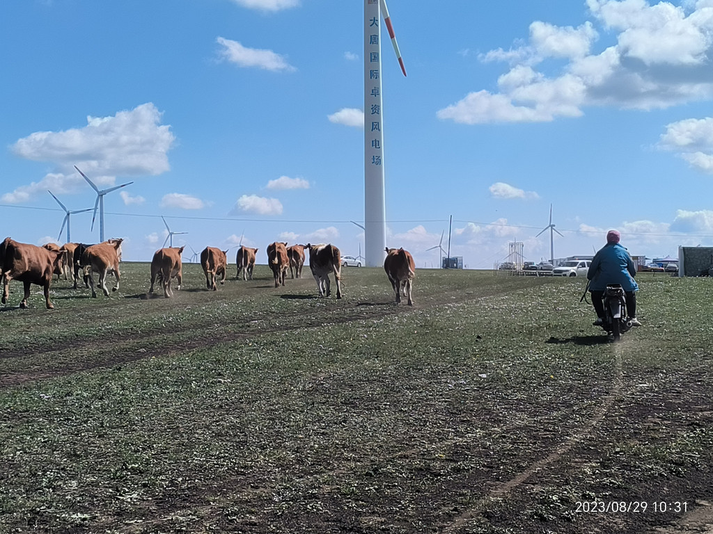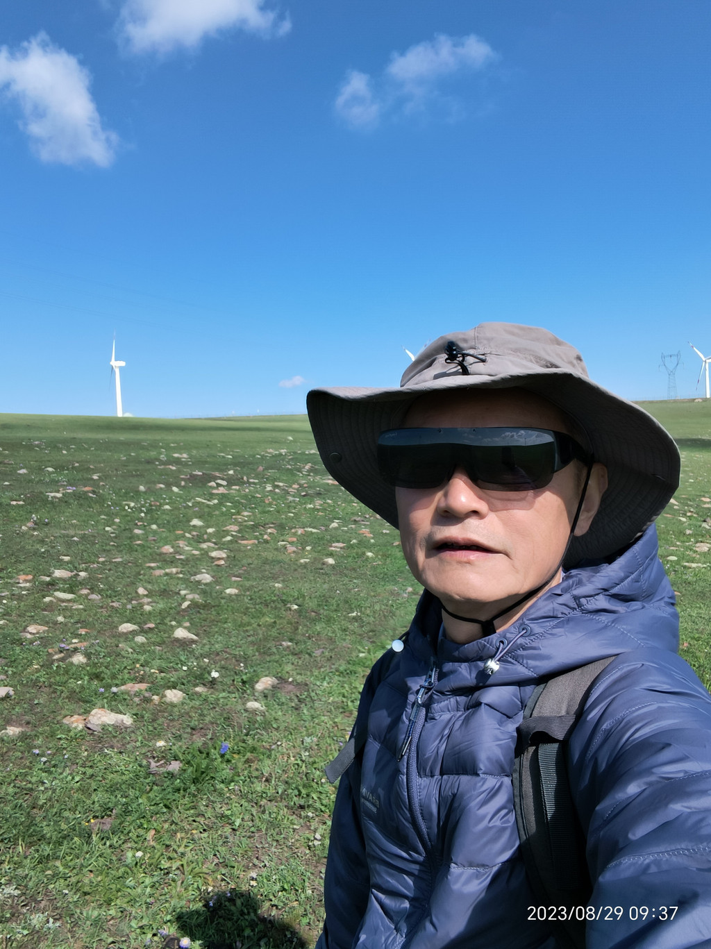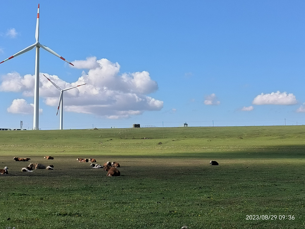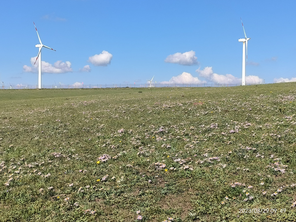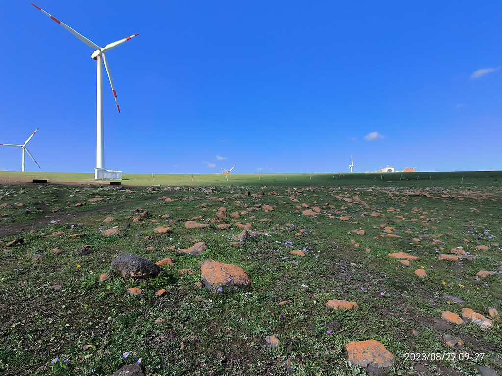 陡然升高的地形,顿然感觉风挺大,放眼四望,风轮很多,早上还得穿棉袄。