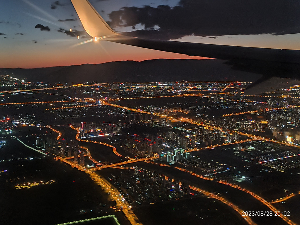 北上想观日落,特地请值机安排左手靠窗座,面西呢!