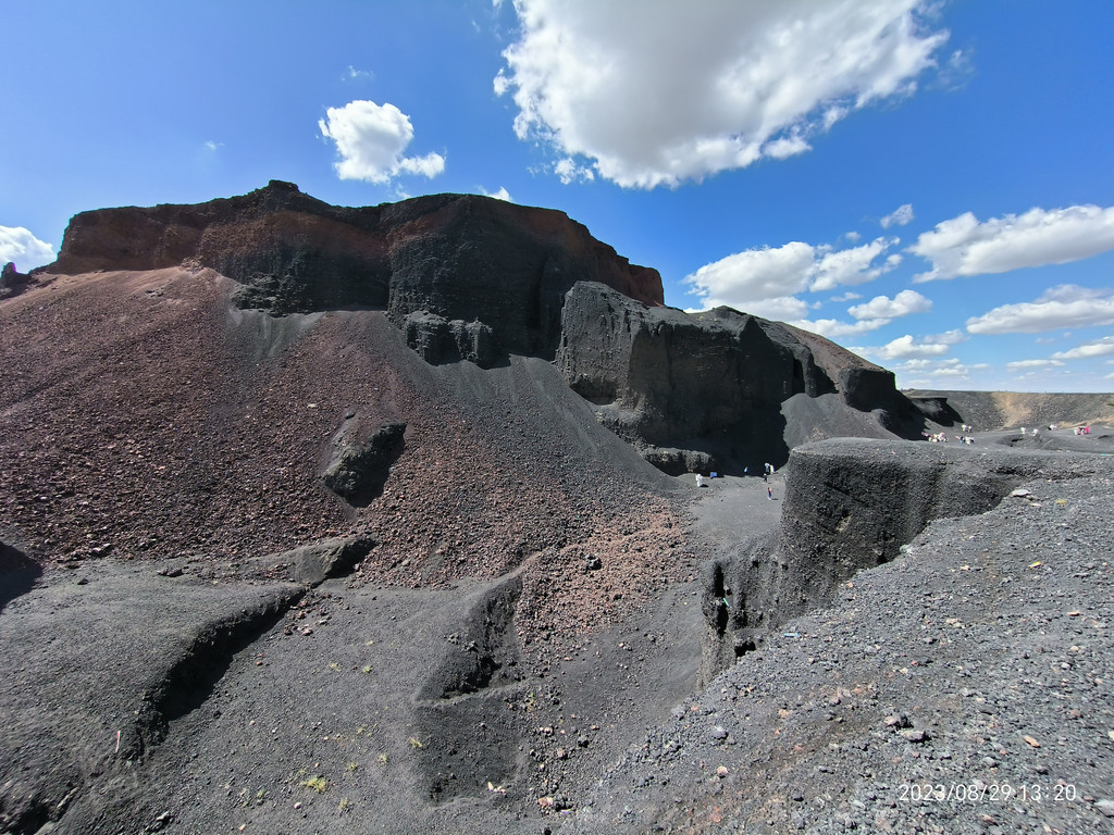 数万年前的火山喷发,在辽阔的草原上形成了七八座山丘,有的平顶,有的尖锥状;有的乌黑,有的披绿色。