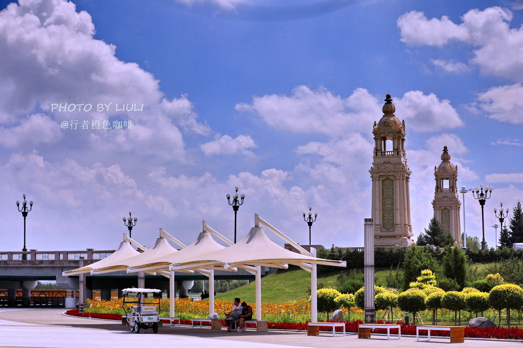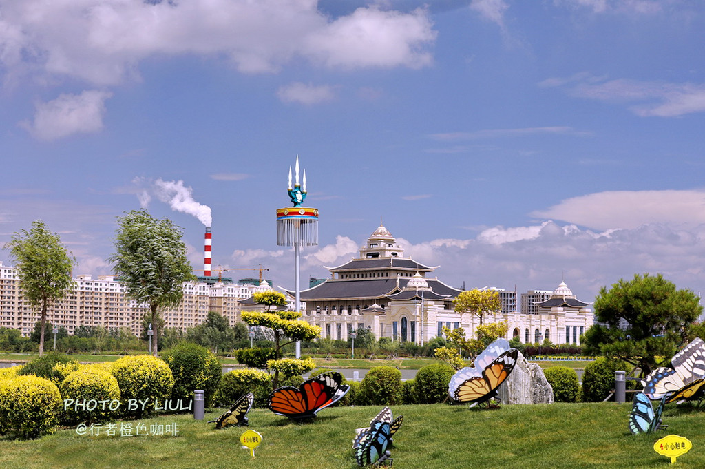 公园正对着归流河东岸恢宏的乌兰牧骑宫,与绿化景观构成一幅美丽的画卷。