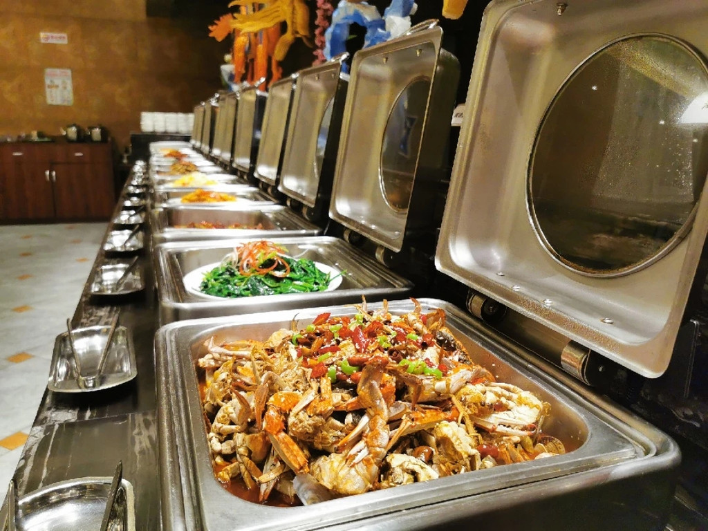 自助餐里面菜品很多,也很齐全,烤肉到海鲜还有糕点都应有尽有,色泽晶黄的烤鸭散发着诱人的香味,精致的小蛋糕,各种各样的海鲜一定要每一样都吃到,才会过瘾。