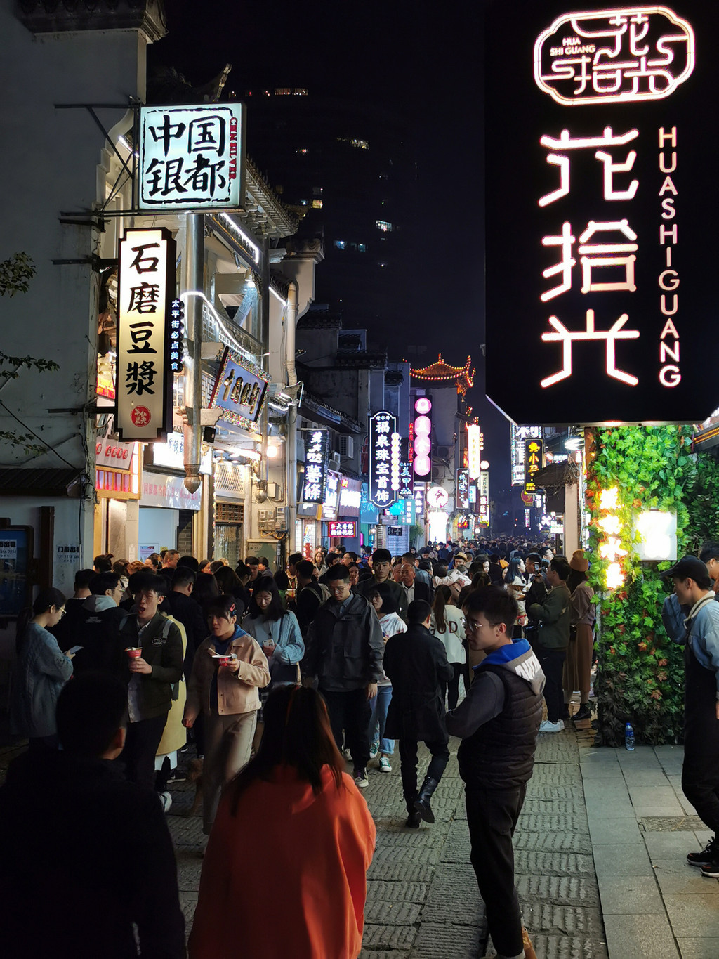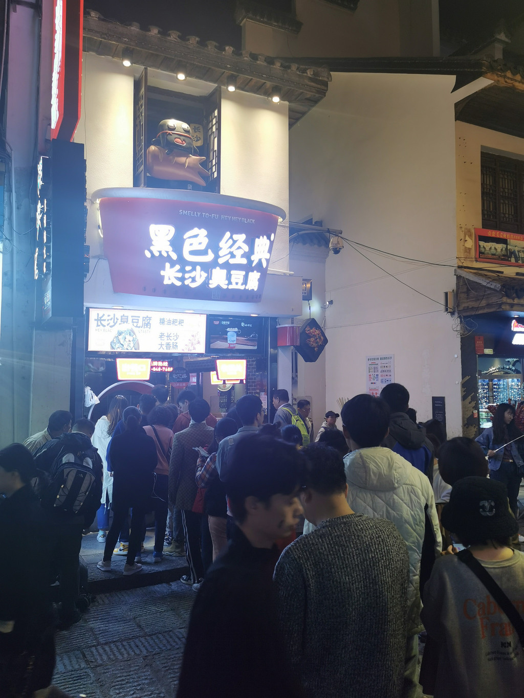 逛过橘子洲头,已经是华灯初上。刚好去夜市里吃那些令人垂涎的美食小吃。长沙的夜市有很多,我们选了太平街,还没进入夜市里,远远的就看到夜市里密密麻麻的身影,更可以嗅到空气里混合的各种吃食的味道。