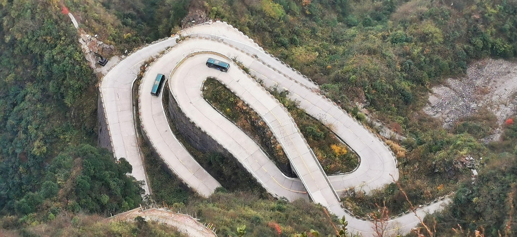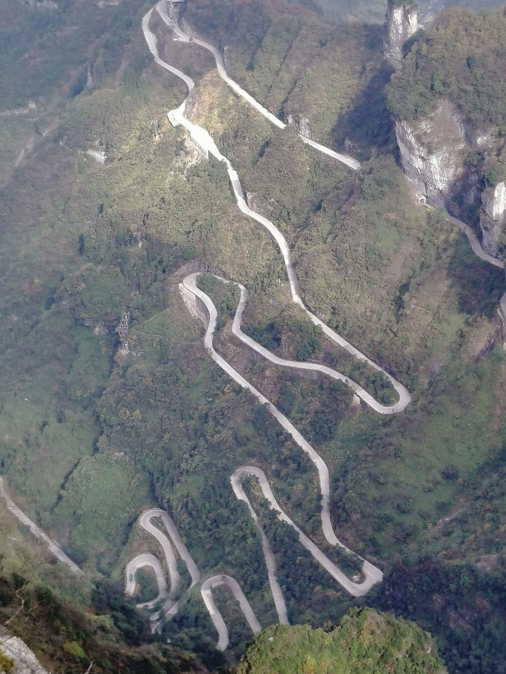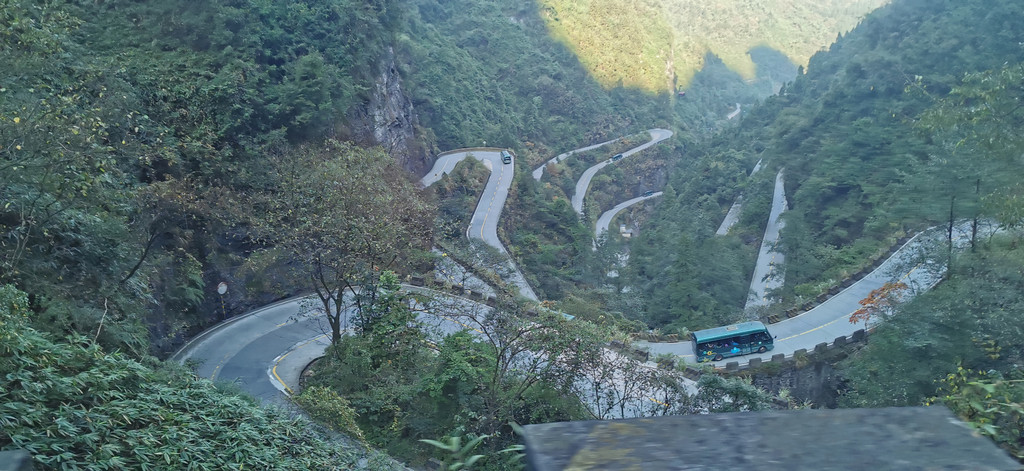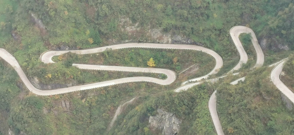 而山顶向下看去,那九十九道弯的山路是如此的壮观,如山腰的一条白色丝带在飞舞,都说大自然是神奇的,可此刻我觉着人类更加伟大。