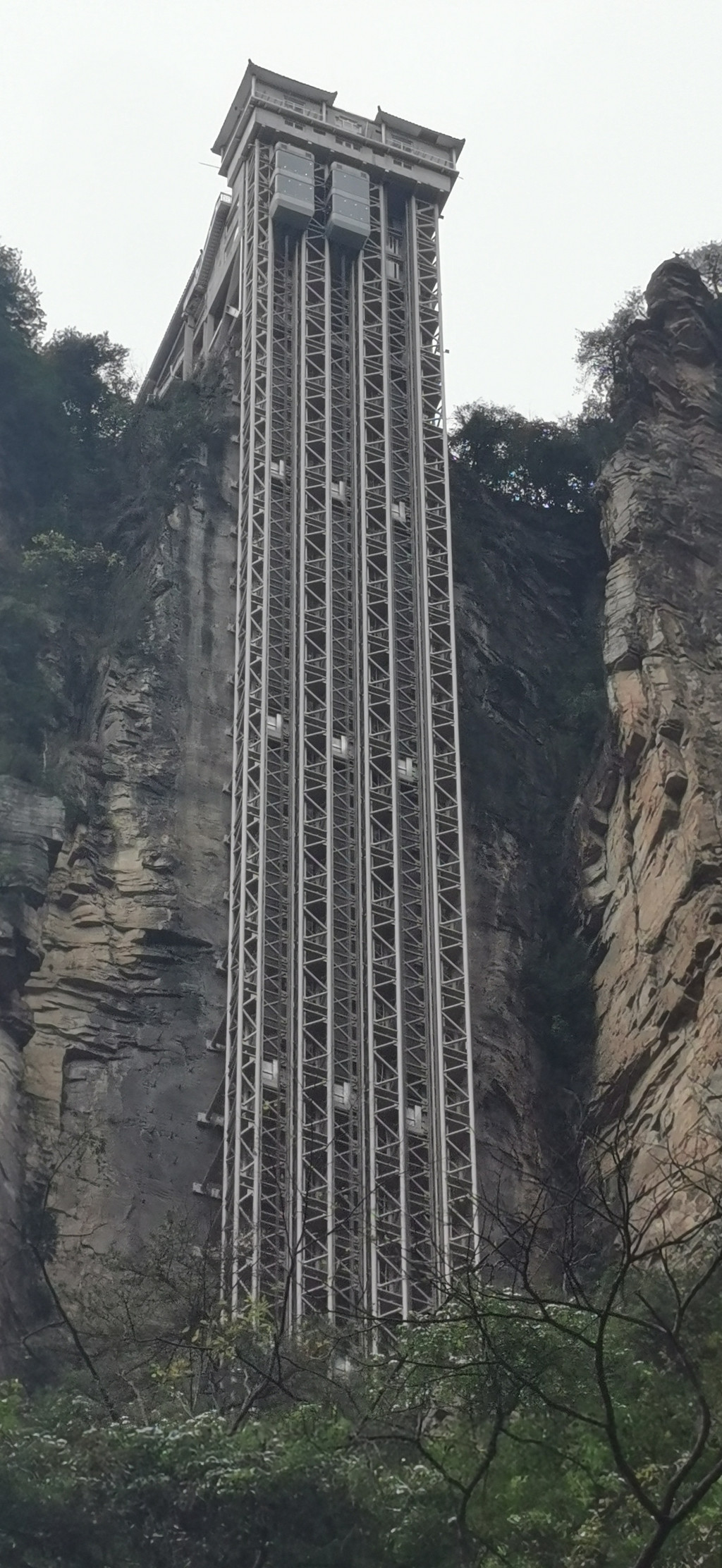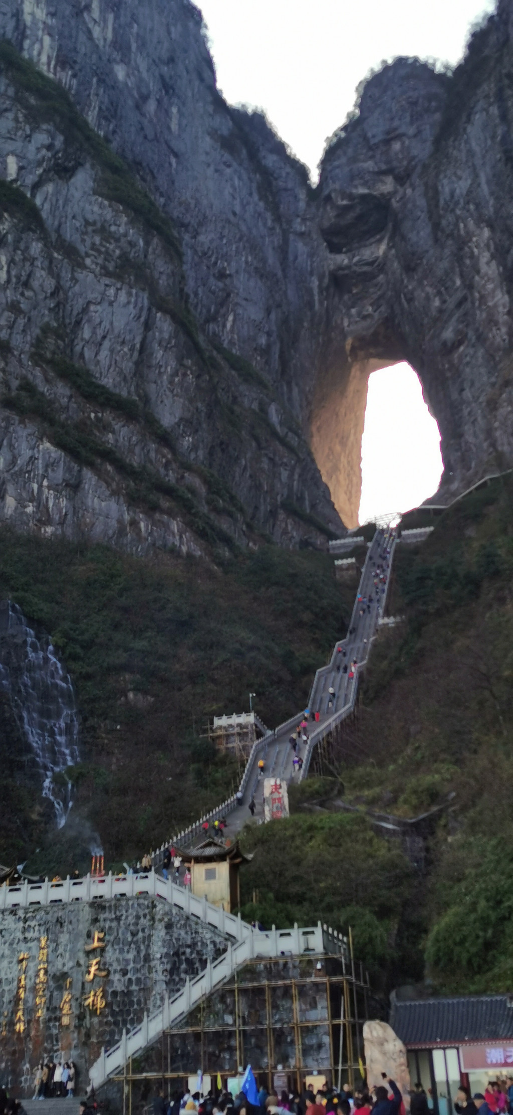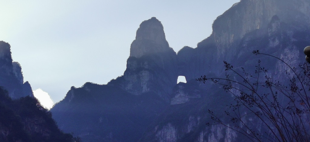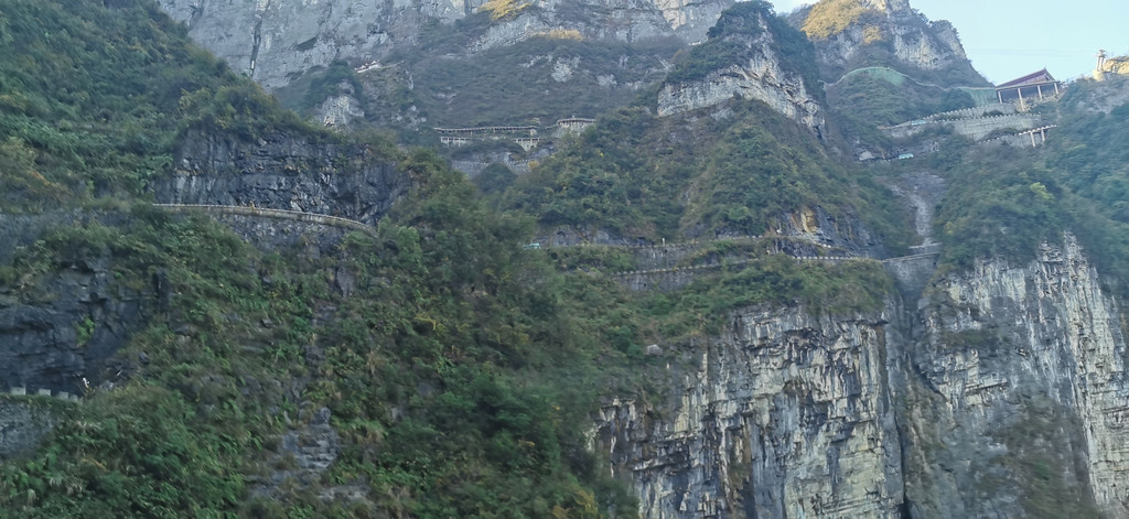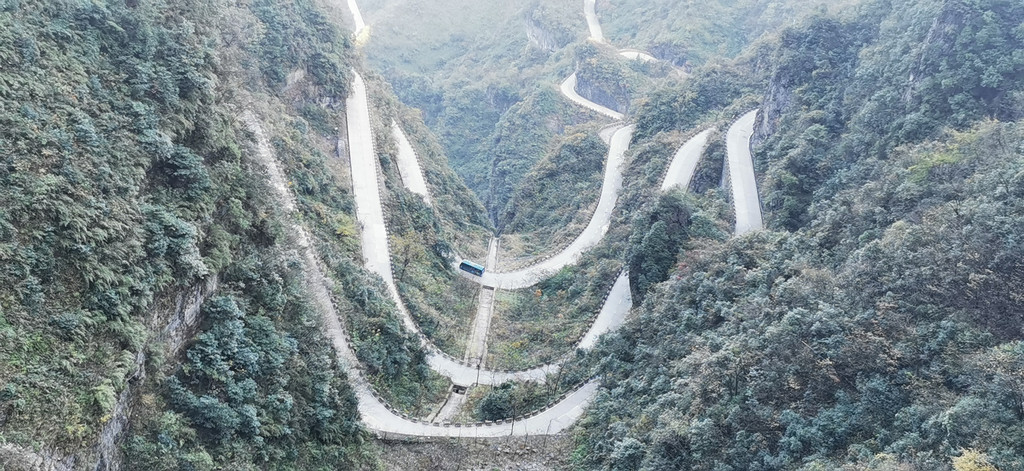 沿九十九道弯的山路一路前行,结果路太陡,导致这一路上车就睡觉的美妞因紧张而大睁双眼不能入眠。到达天门山上又是无尽头的扶梯转了又转,终于到达天门山顶。山顶上可俯瞰远处张家界的全貌,一条澧水河穿城而过。山顶上也有李娜出家的禅院,实际上是个山顶别墅,只是现在人去楼空而已。