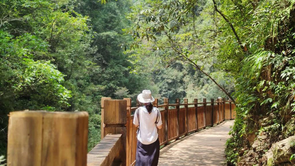 接下来,我跟我先生在峡谷底会和之后,就要去乘船出景区了,但是。。。。我真的没想到,要走这么久orz。。。。真的真的好久啊o(╥﹏╥)o~~还是单行的,没有回头路,必须要走~走到后面都快失去时间意识了(可能其实没那么久,但那天真的很累了)。幸运的是,只要不是高空作业,我先生明显就从当机状态恢复过来了,这边走起来累,拍的照片还是很美的,字面意义上的青山绿水~