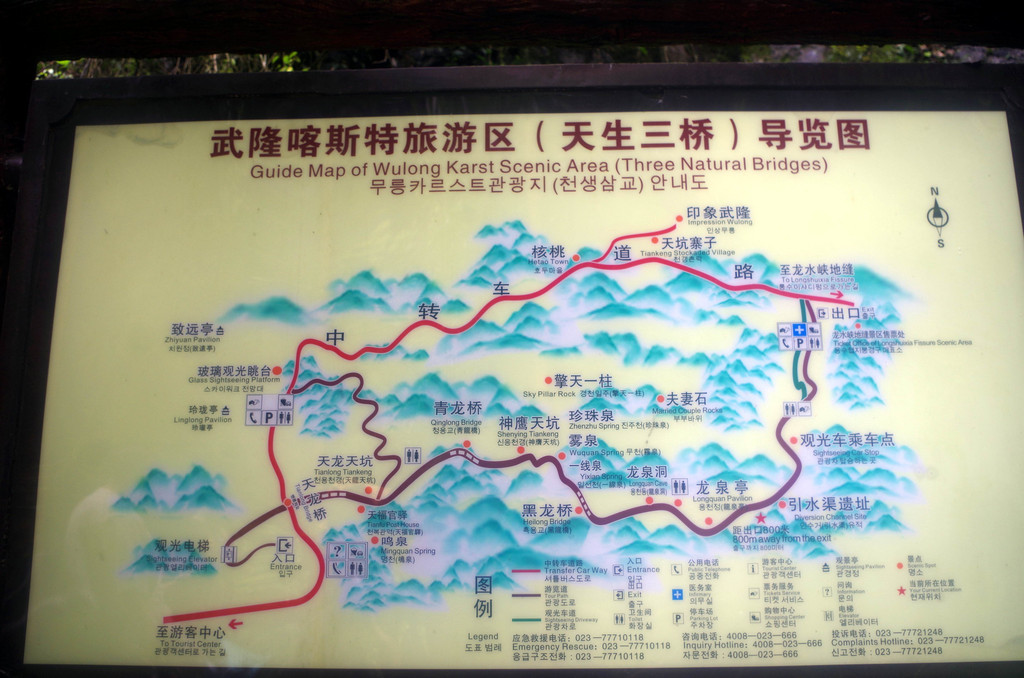 终于走出了天坑,我腿上的肌肉显得酸疼酸疼。不过,休息了一会,感觉还能走。于是,我坐上景区的车,奔向15公里外的地缝。来到景区,我们一车人,居然有好几个不敢下去了,因为太累,竟然有几个比我还年轻的男女放弃了地缝景观。