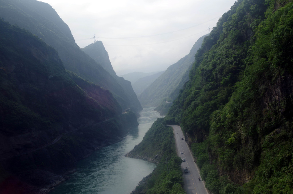 汽车开出近两个小时,雾气渐渐散去。导游告诉我们,车子慢行,让我们看峡谷中的乌江。